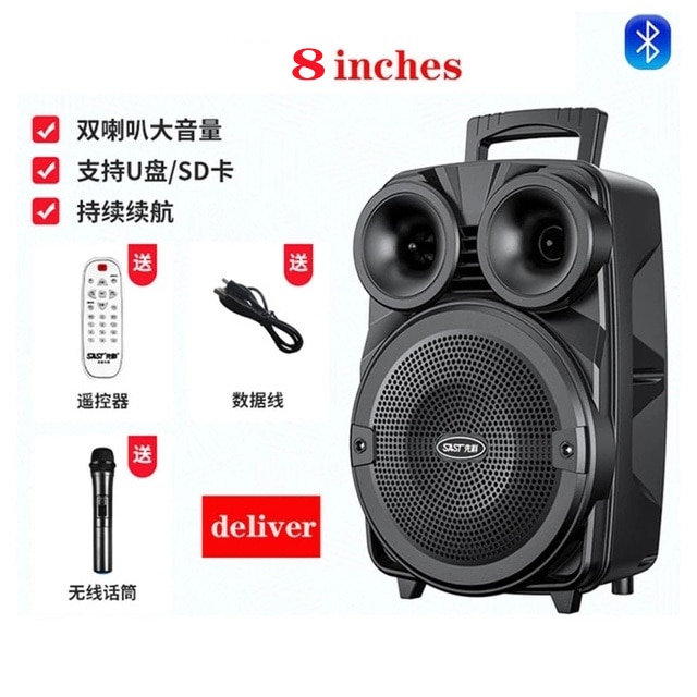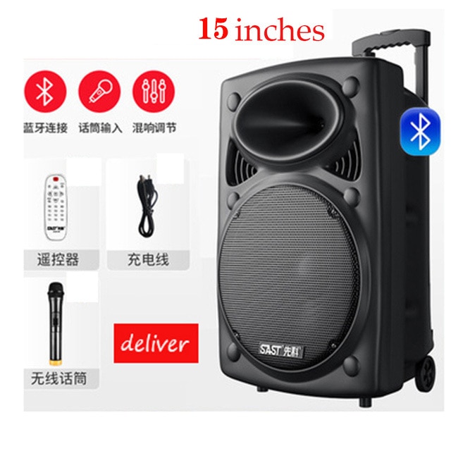 150W Bluetooth Speaker Column 15-Inch Subwoofer K Song Boombox Outdoor Square Dance Soundbox Wireless Microphone TF AUX U Disk